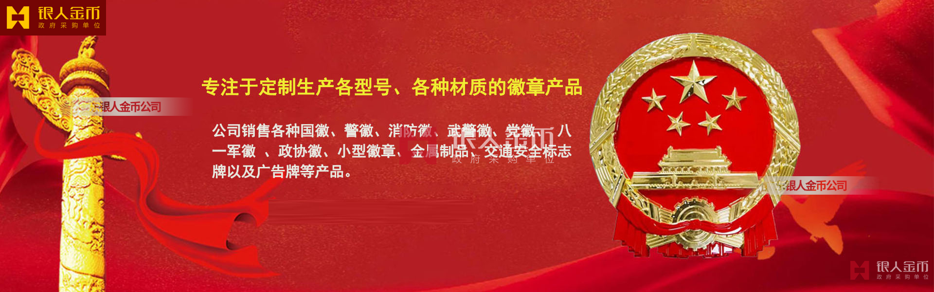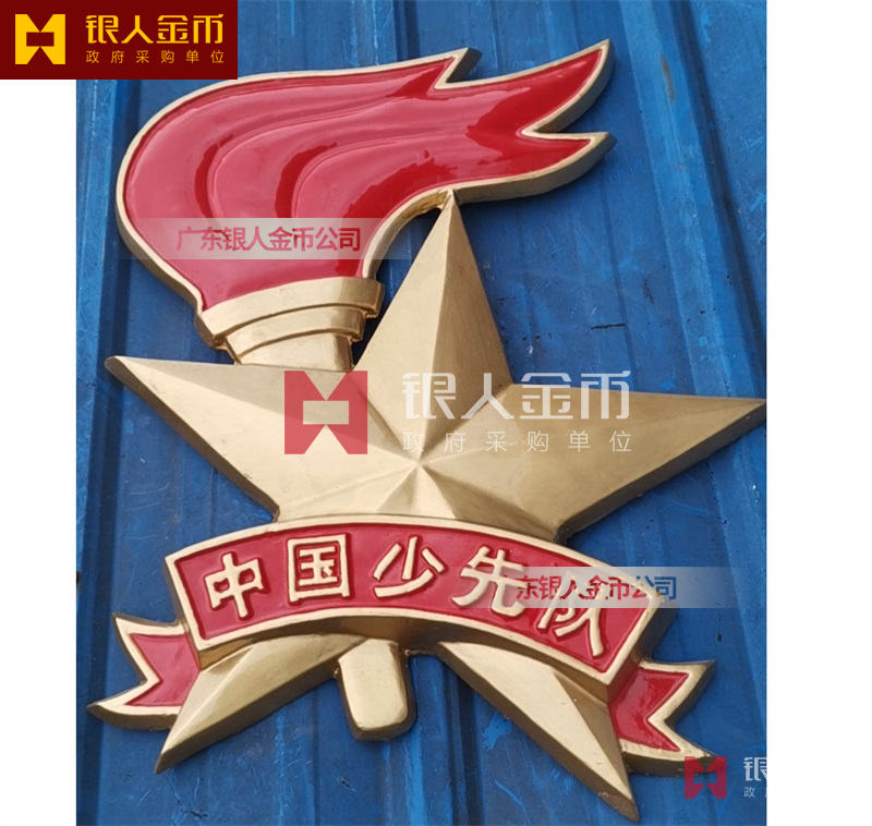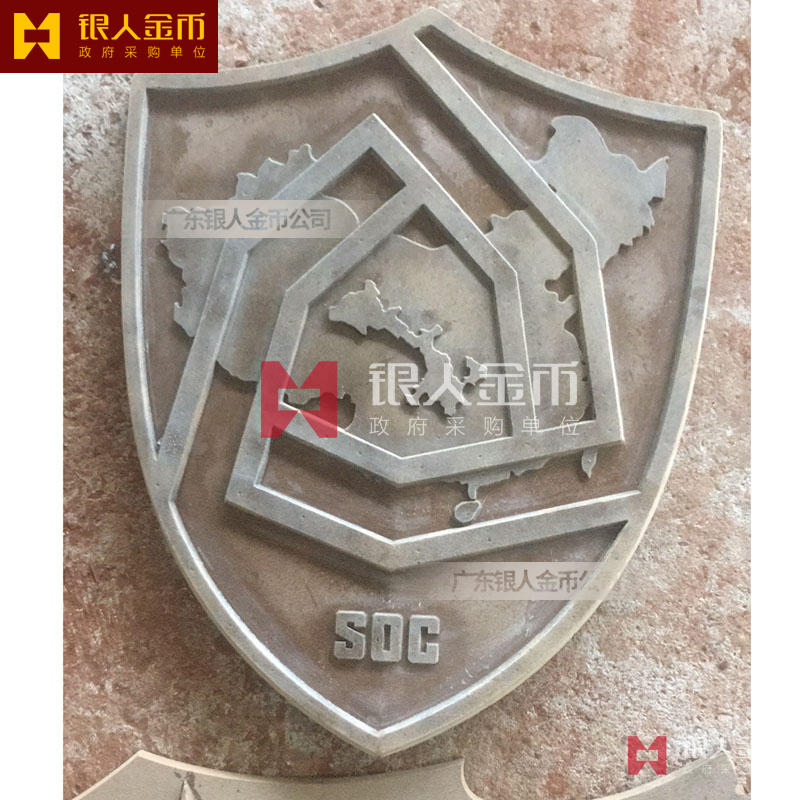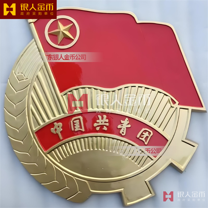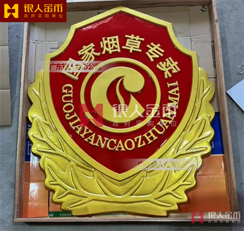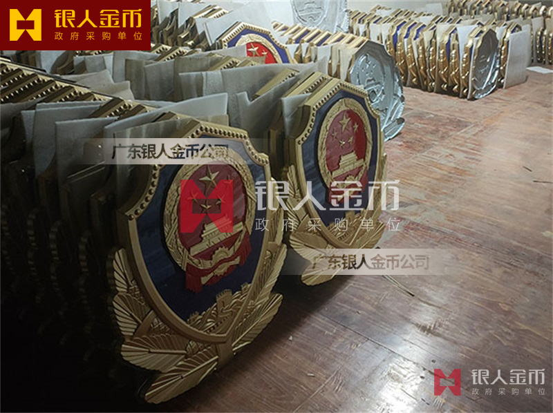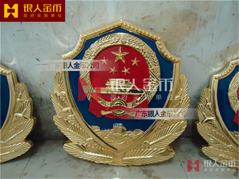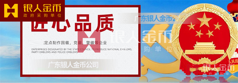 广州银人徽章厂有限公司-是广东省一家专业以研发.设计.铸造.生产销售一体的大型企业.徽章严格按国家标准设计与制作.以优质的ZL102铸造铝合金、铜、合金、锌合金、合金、锌等为材料.经高温.浸透压延铸制造技术,采用高级汽车烤漆房.高光泽静电匀布式喷烤漆工艺处理,挂徽表面喷涂进口透明防腐蚀漆加以保护.该产品具有重量轻,牢固强.拒风雨.抗日晒.色彩鲜艳.保持不褪色特点.挂徽美观庄重.雄伟庄严.是政府大楼,机关单位.企事业学校等必备悬挂标志。