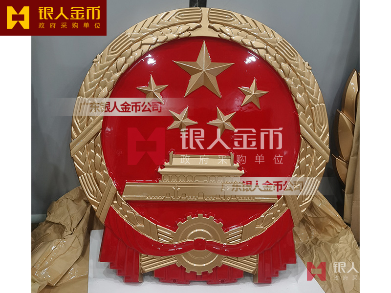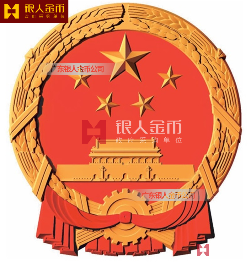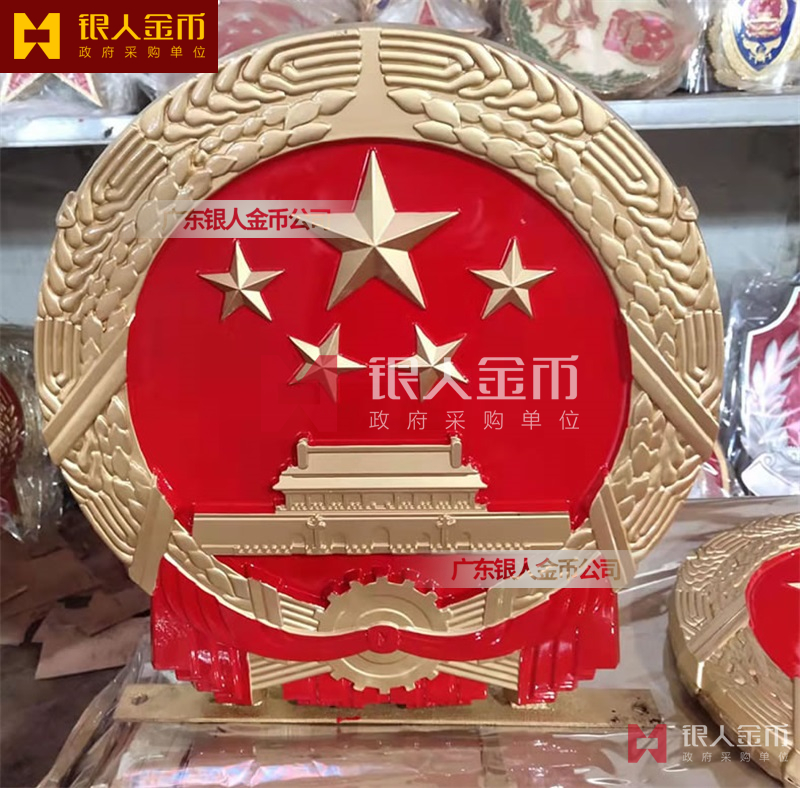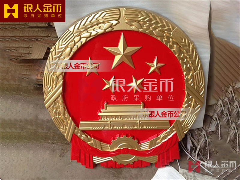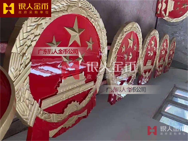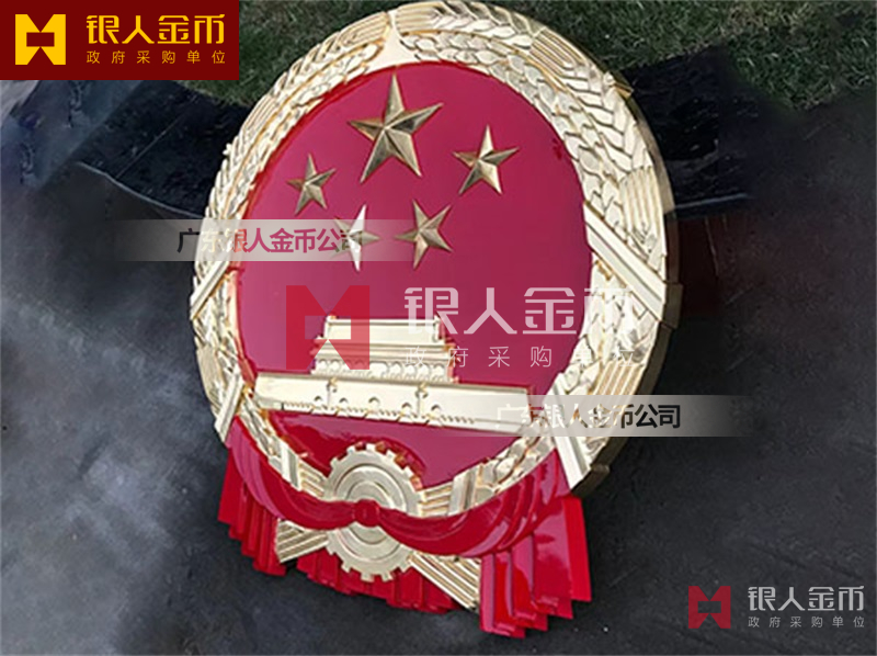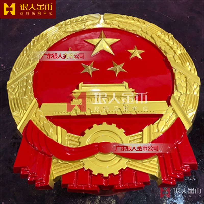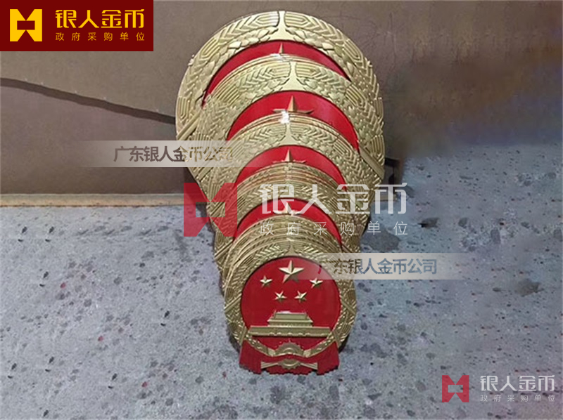 国徽订做、国徽生产、国徽批发、国徽制作、国徽销售、国徽设计、国徽制做、国徽制造、国徽加工、国徽零售我们做为一个对人民和政府负责任的企业,用精湛的工艺来报答人民服务忠于国家和人民的群体,用专业来服务,制作大型国徽徽章是严格按照《中华人民共和国国徽标准[GB15093-94]的规定制作,具有重量轻,高强度,拒风雨抗日晒,色彩鲜艳,不褪色的特点。高光泽静电均布式喷烤漆和先进贴金工艺,挂徽表面喷涂进口透明防腐蚀漆加以保护,欢迎批发商与单位领导们来电选购。