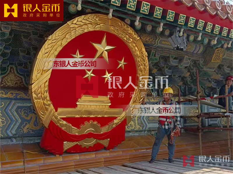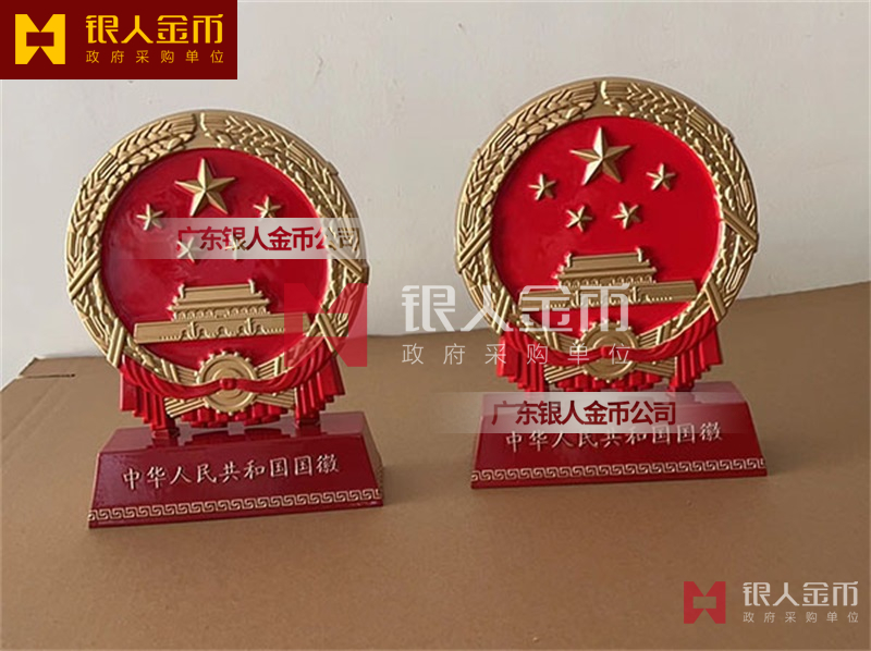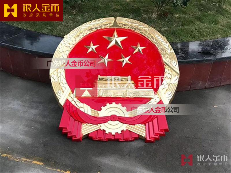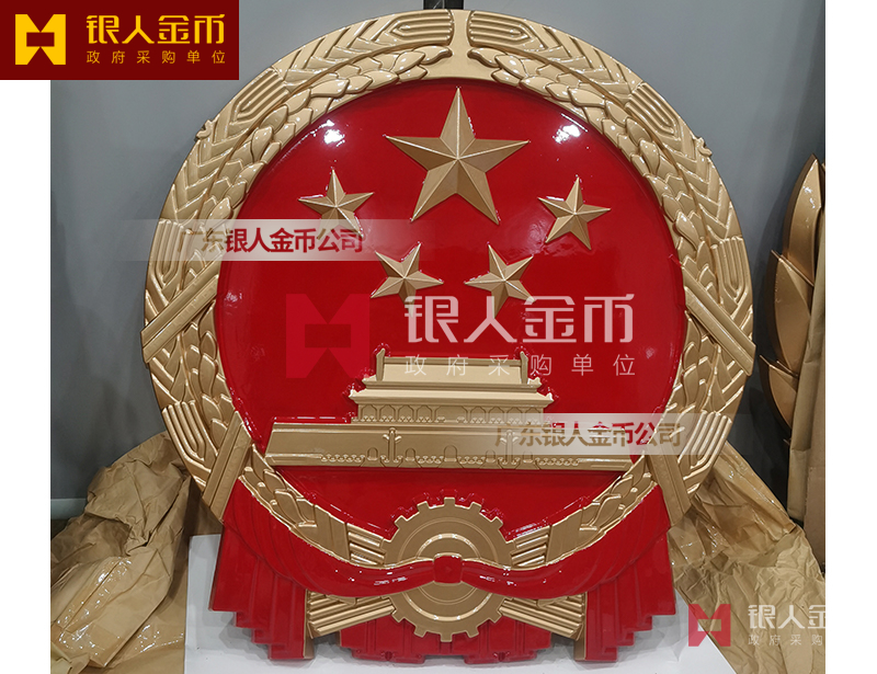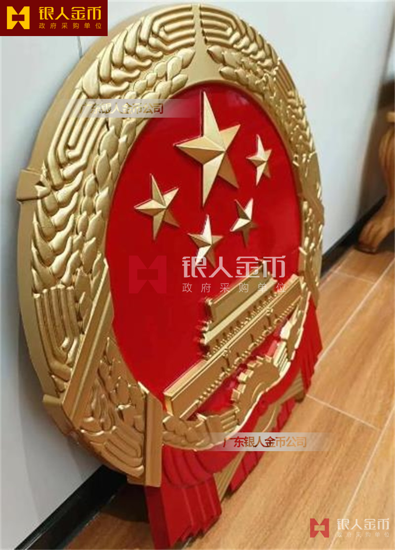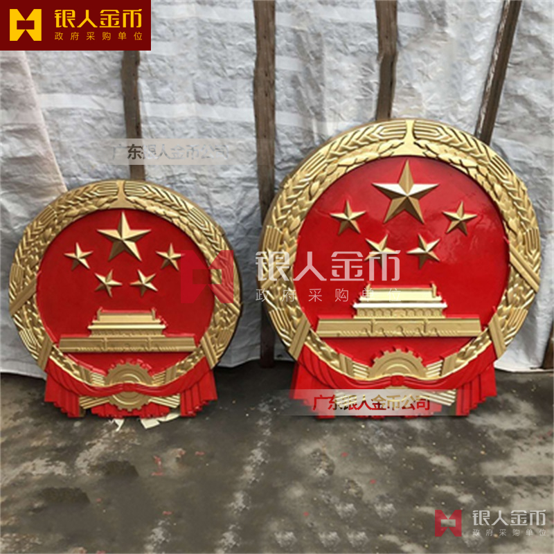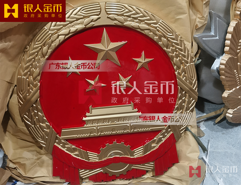 国徽订做、国徽生产、国徽批发、国徽制作、国徽销售、国徽设计、国徽制做、国徽制造、国徽加工、国徽零售我们做为一个对人民和政府负责任的企业,用精湛的工艺来报答人民服务忠于国家和人民的群体,用专业来服务,制作大型国徽徽章是严格按照《中华人民共和国国徽标准[GB15093-94]的规定制作,具有重量轻,高强度,拒风雨抗日晒,色彩鲜艳,不褪色的特点。高光泽静电均布式喷烤漆和先进贴金工艺,挂徽表面喷涂进口透明防腐蚀漆加以保护,欢迎批发商与单位领导们来电选购。