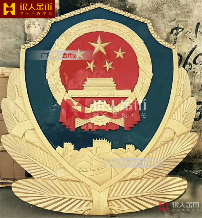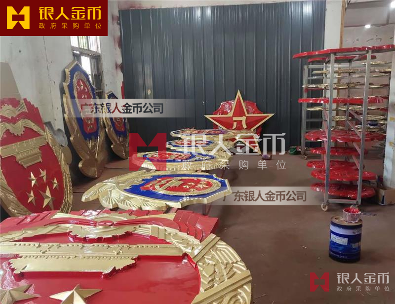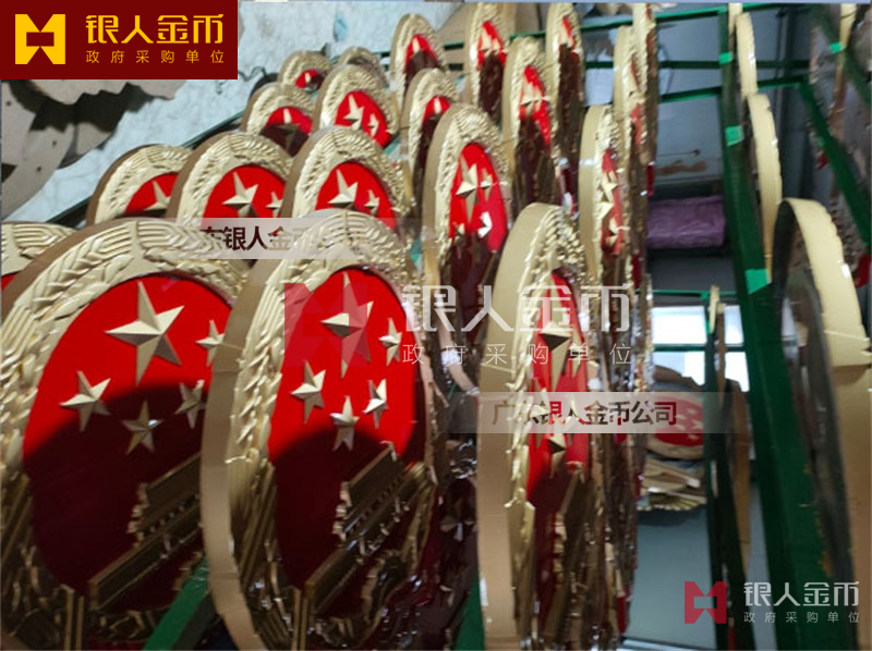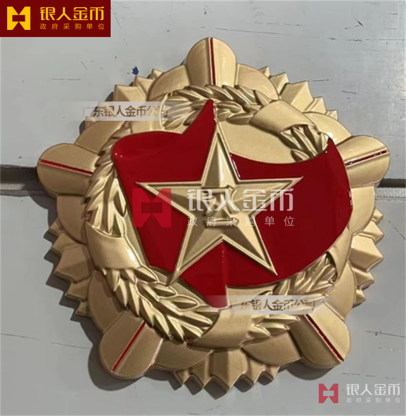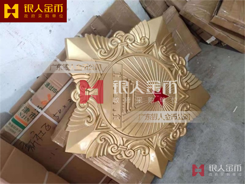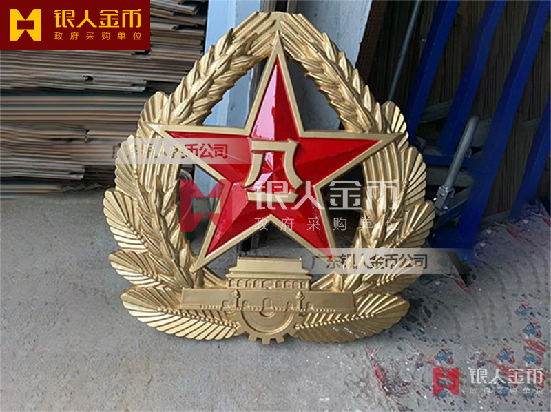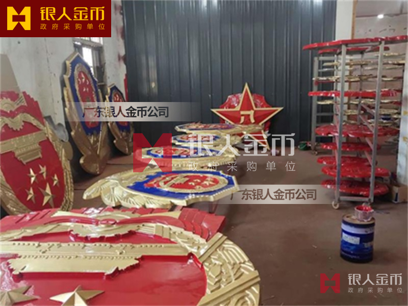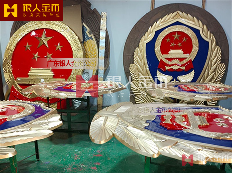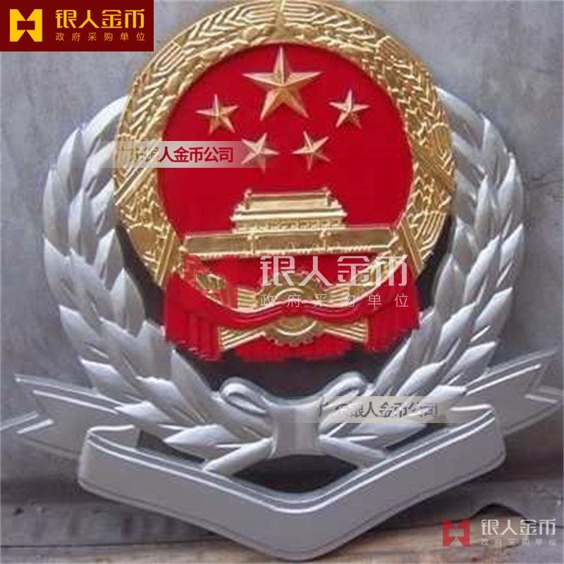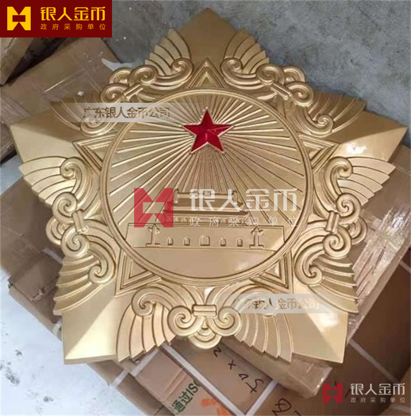 政府部队战区机关大楼门头礼堂户外室内外悬挂大型国徽党徽八一军徽警徽政协会徽五角星检察院徽法院徽标生产制作定制(图)【广州徽章厂制作公司】