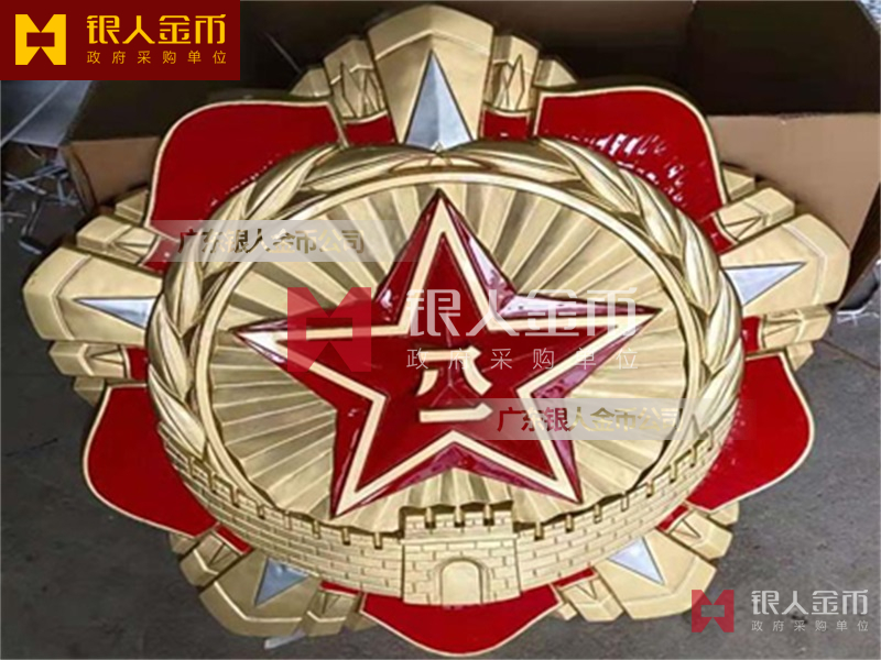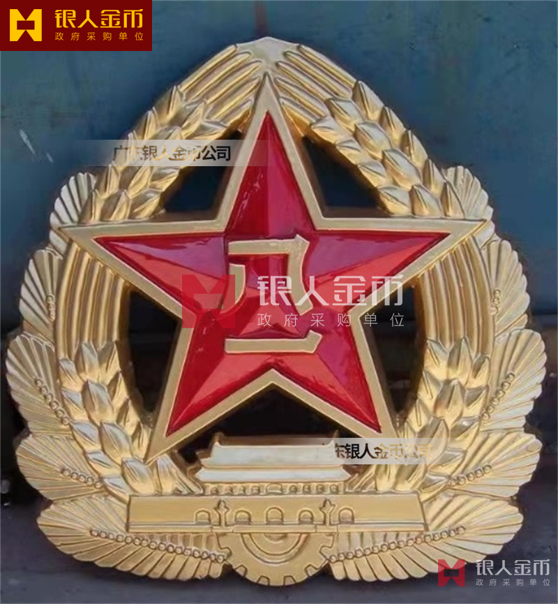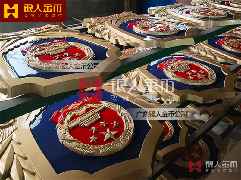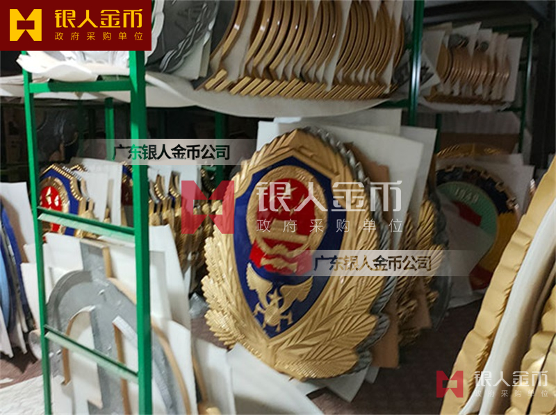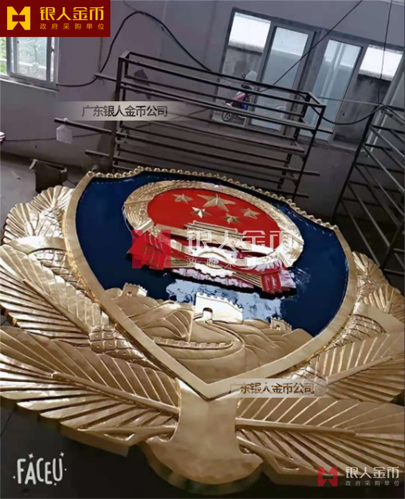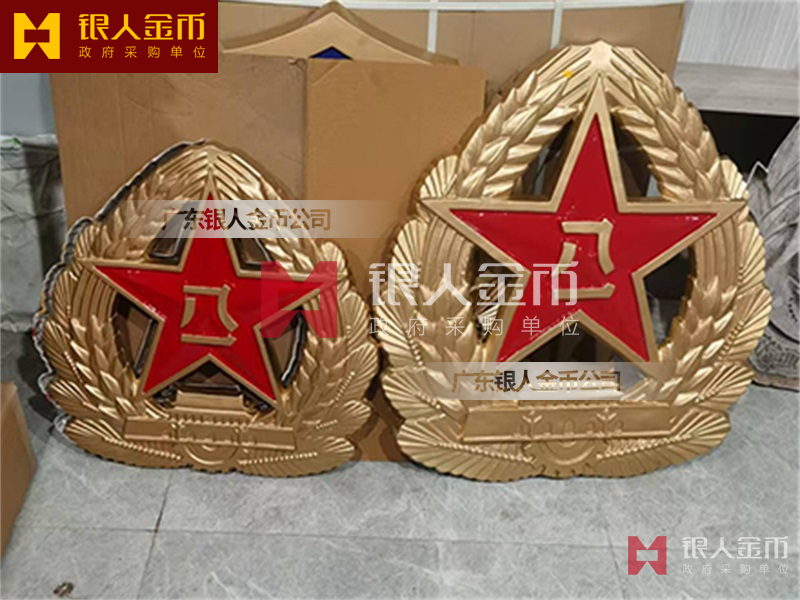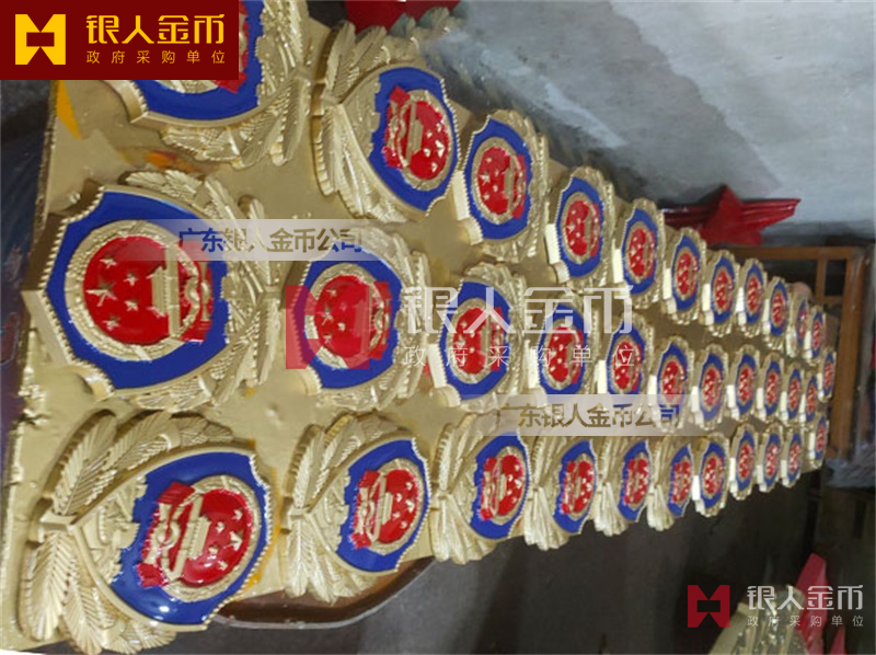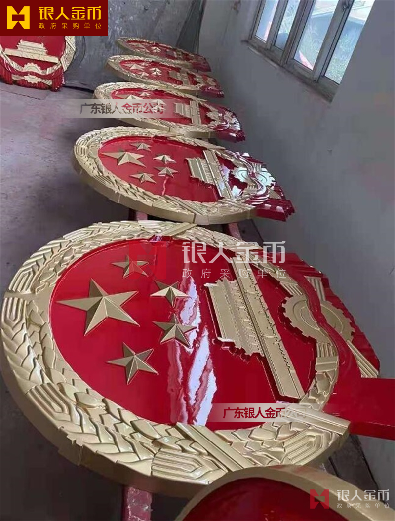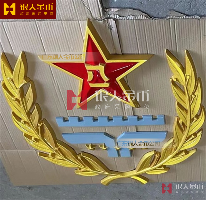 政府部队战区机关大楼门头礼堂户外室内外悬挂大型国徽党徽八一军徽警徽政协会徽五角星检察院徽法院徽标生产制作定制(图)【广州徽章厂制作公司】