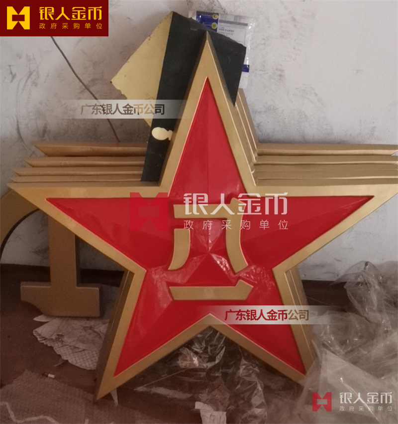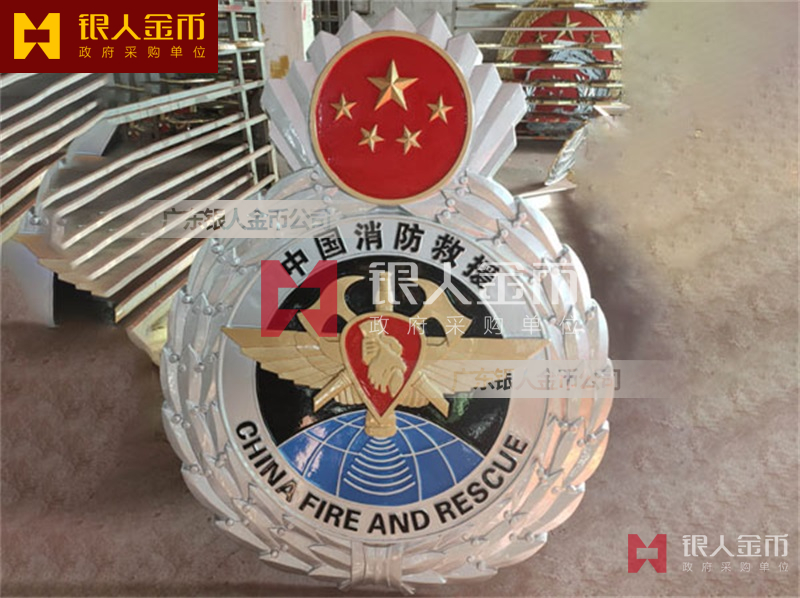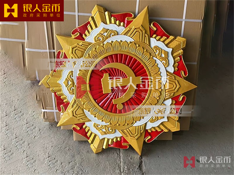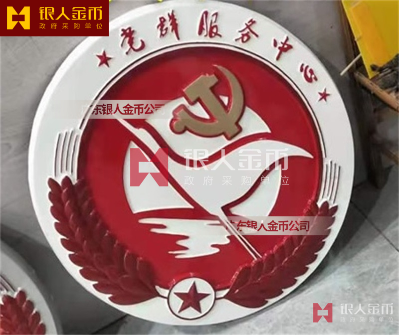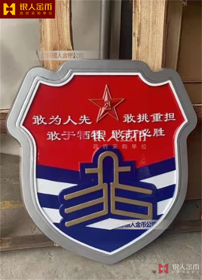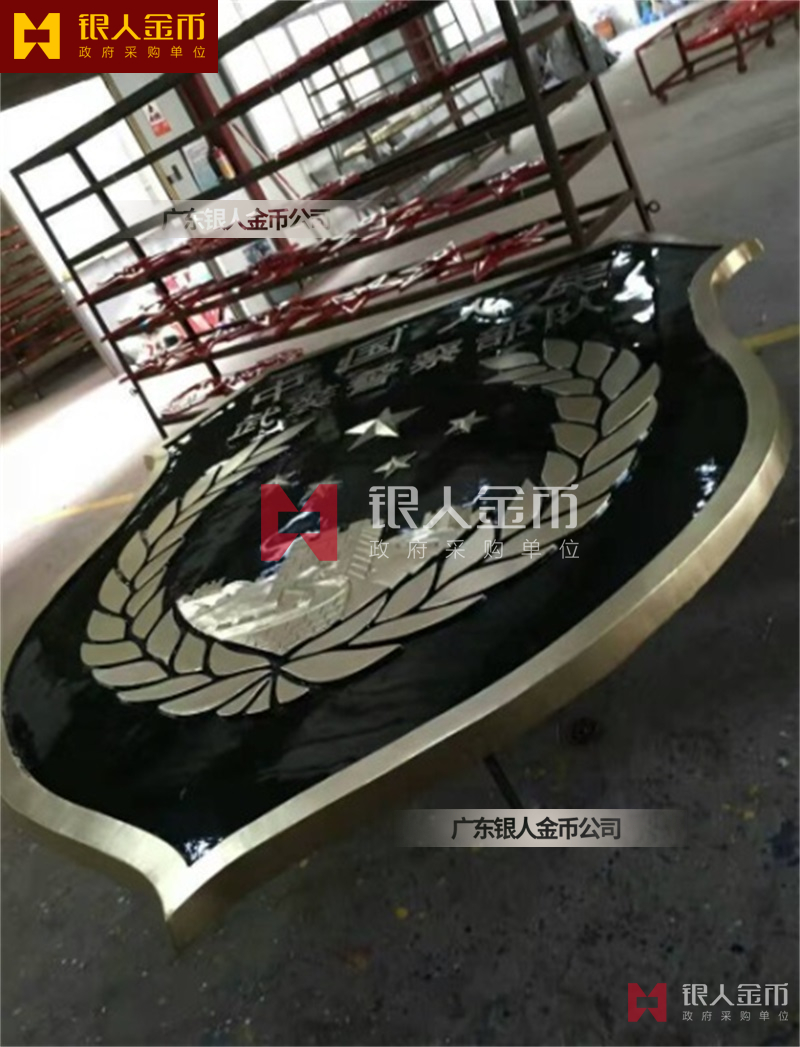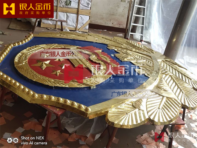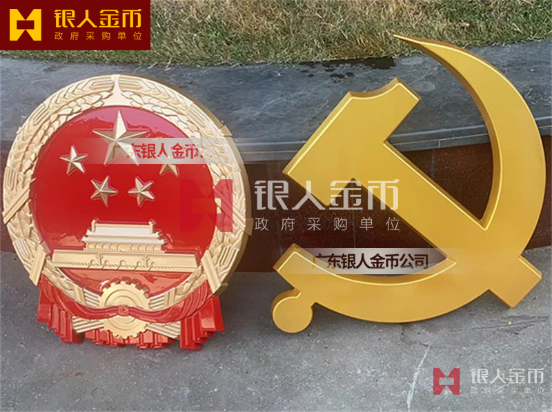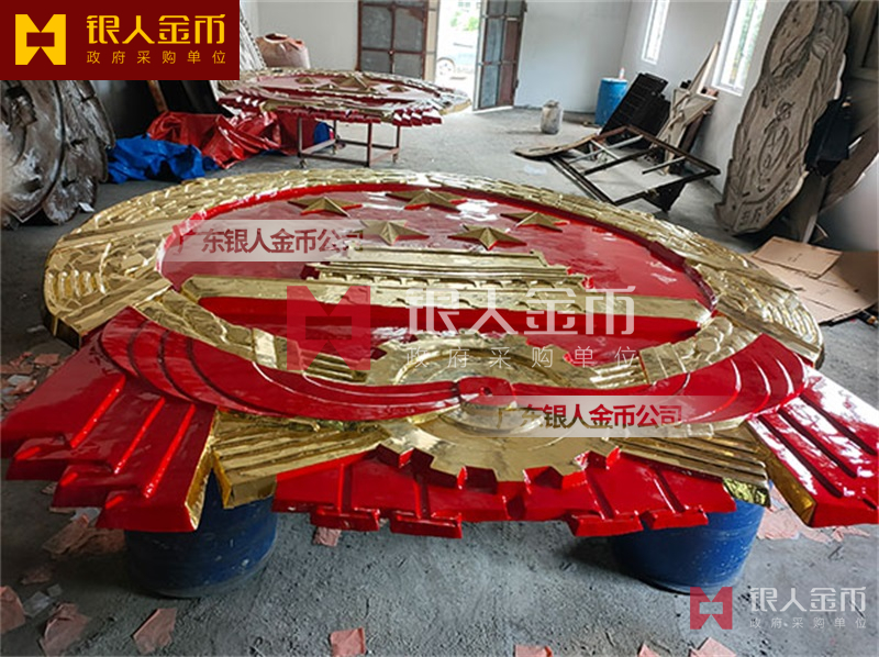 政府部队战区机关大楼门头礼堂户外室内外悬挂大型国徽党徽八一军徽警徽政协会徽五角星检察院徽法院徽标生产制作定制(图)【广州徽章厂制作公司】