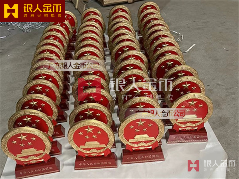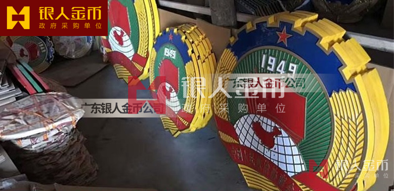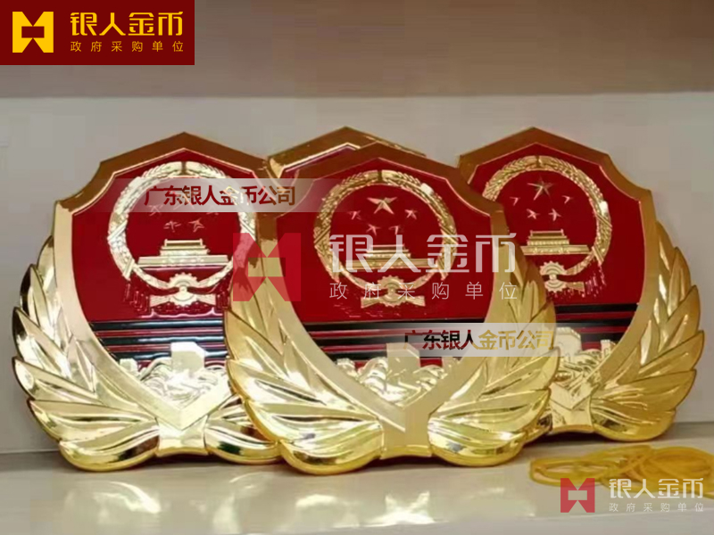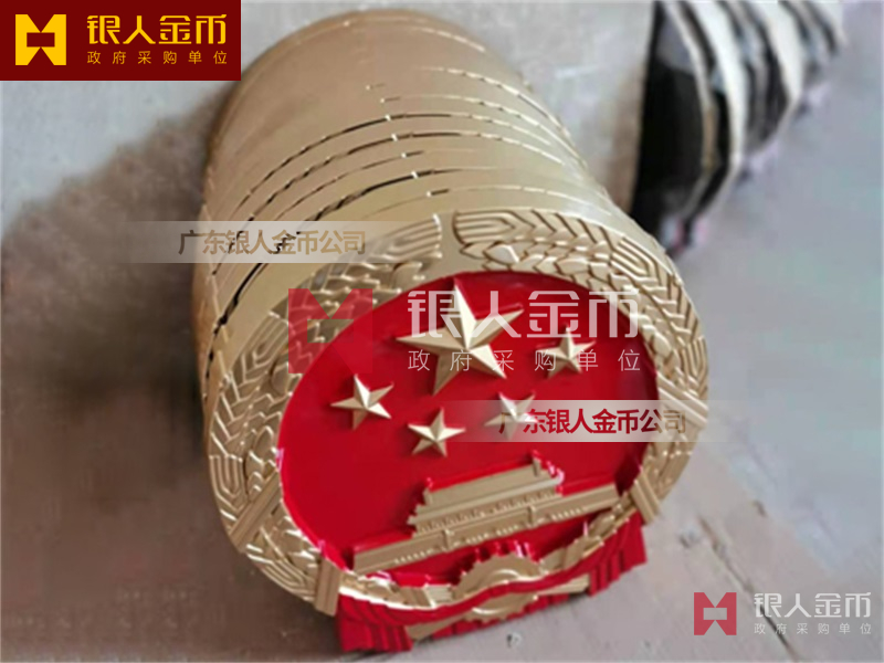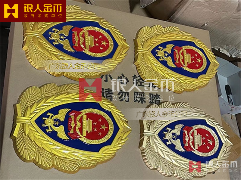 国徽订做、国徽生产、国徽批发、国徽制作、国徽销售、国徽设计、国徽制做、国徽定做、国徽制造、国徽加工、国徽零售我们做为一个对人民和政府负责任的企业,用精湛的工艺来报答人民服务忠于国家和人民的群体,用专业来服务,【广州天河徽章厂】制作大型标志徽章是严格按照《中华人民共和国国徽标准[GB15093-94]的规定制作,公安警徽按照《人民警察警徽技术标准》[GA244-2000]制作,其他标志制作按照国徽标准来制作。是采用高强度轻铝合金为材料,并采用先进的浸透压延铸造技术,高光泽静电均布式喷烤漆和先进贴金工艺,挂徽表面喷涂进口透明防腐蚀漆加以保护。具有重量轻,高强度,拒风雨抗日晒,色彩鲜艳,永不褪色的特点。高光泽静电均布式喷烤漆和先进贴金工艺,挂徽表面喷涂进口透明防腐蚀漆加以保护。具有重量轻,高强度,拒风雨抗日晒,色彩鲜艳,永不褪色的特点。是会议室、礼堂、办公大楼、机关大院等重要场所的必备标志 为全国顾客提供订做、生产、批发、制作、销售、设计、制做、定做、制造、加工、零售等各种形式的服务。如果你有以下疑问:大型国徽哪里有卖、国徽那里可以制作、国徽在哪里能买到、国徽哪能买到、国徽如何买到、国徽哪里可以买到、国徽现货哪里可以买到、国徽哪里能买到、国徽哪里有出售、国徽哪有卖、有制作有做国徽的厂子、国徽那里能买到、国徽有卖、国徽多少钱,广东银人将为你一一解答,国徽制造企业制作订购,【广州徽章厂】大型挂徽标的生产工艺流程一般为:制作模具、浇筑、抛光、上漆、烤漆/贴金。我厂由于经营多年,常见的标志各种规格模具齐全,常见标志一般都有现货。大型挂徽的常见规格有:40公分、50公分、60公分、70公分、80公分、90公分、1米、1.2米、1.4米、1.5米、1.8米、2米、2.5米、3米、3.5米等。