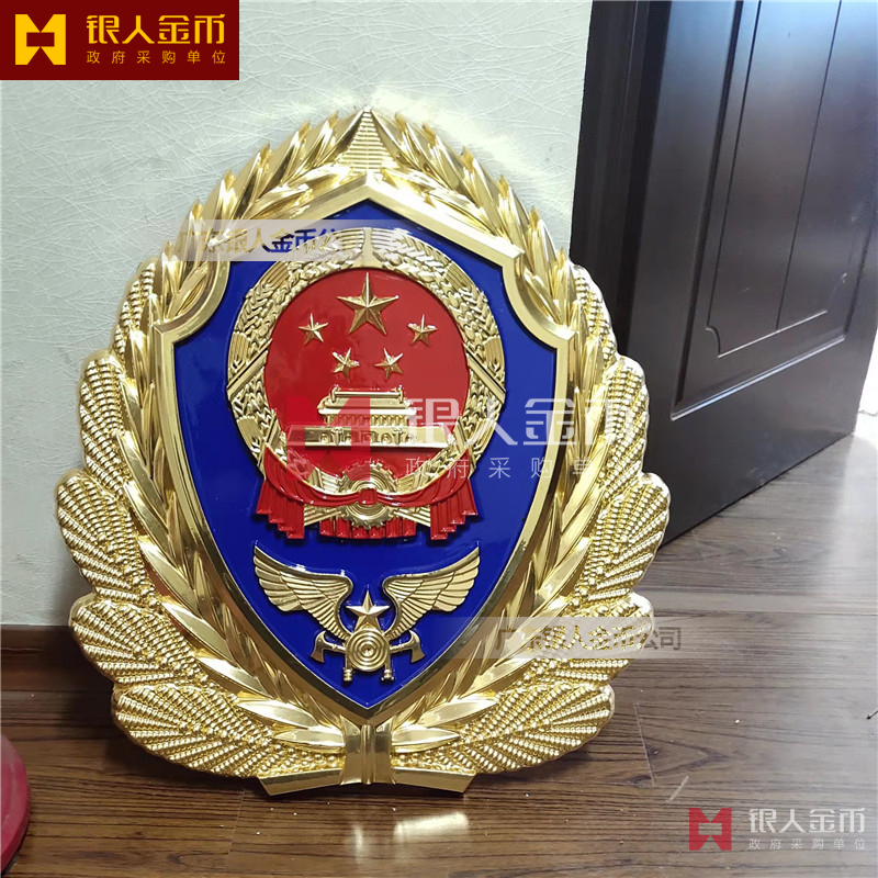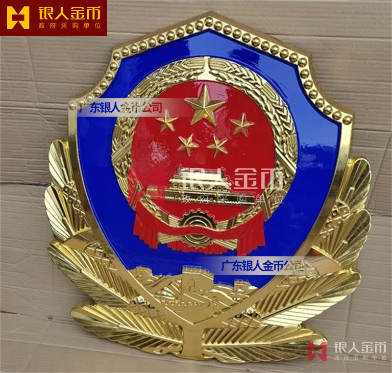 警徽制作 1米警徽压铸工艺重量约6公斤,背面有6个悬挂孔,可承受重量100斤左右,警徽采用铝合金材质制作,重量轻不生锈,警徽具有抗氧化不褪色等各种特点;