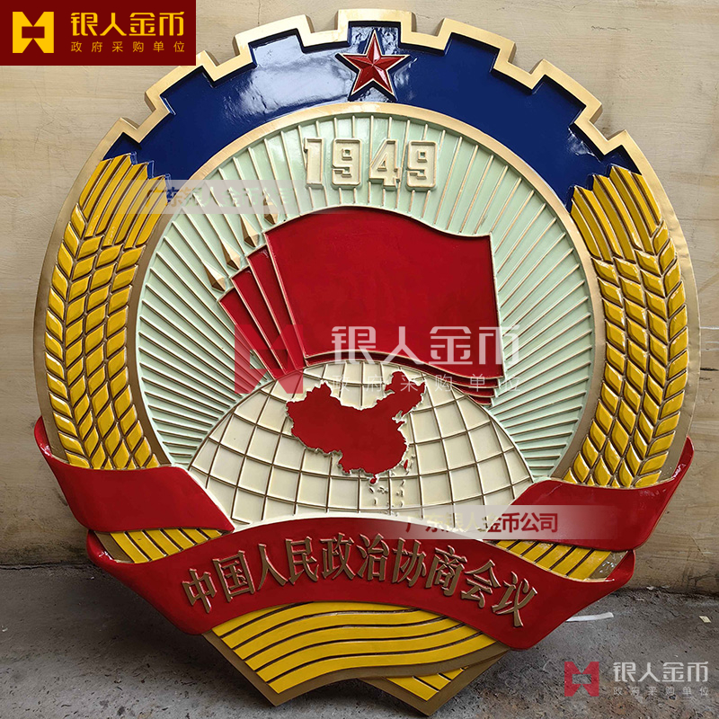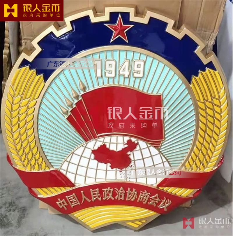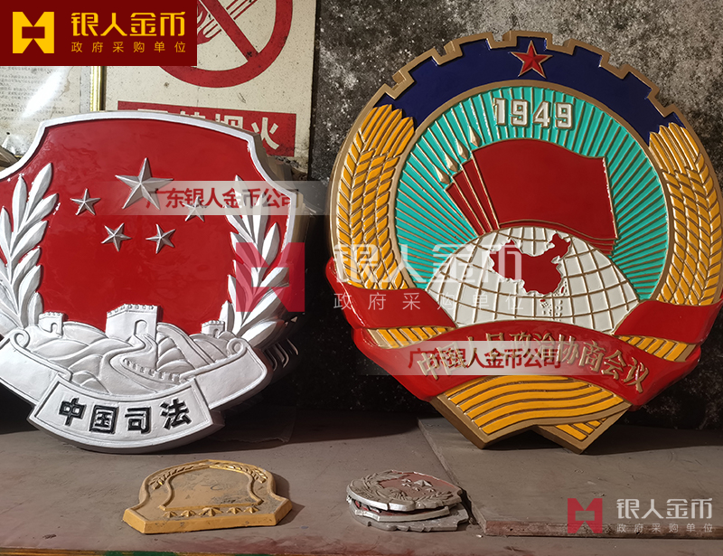 大型户外大楼室内礼堂悬挂人大政协会徽军警税务司法工会交通安监质监检疫法院检察院徽标生产定制制造【广州银人徽章厂制作公司】