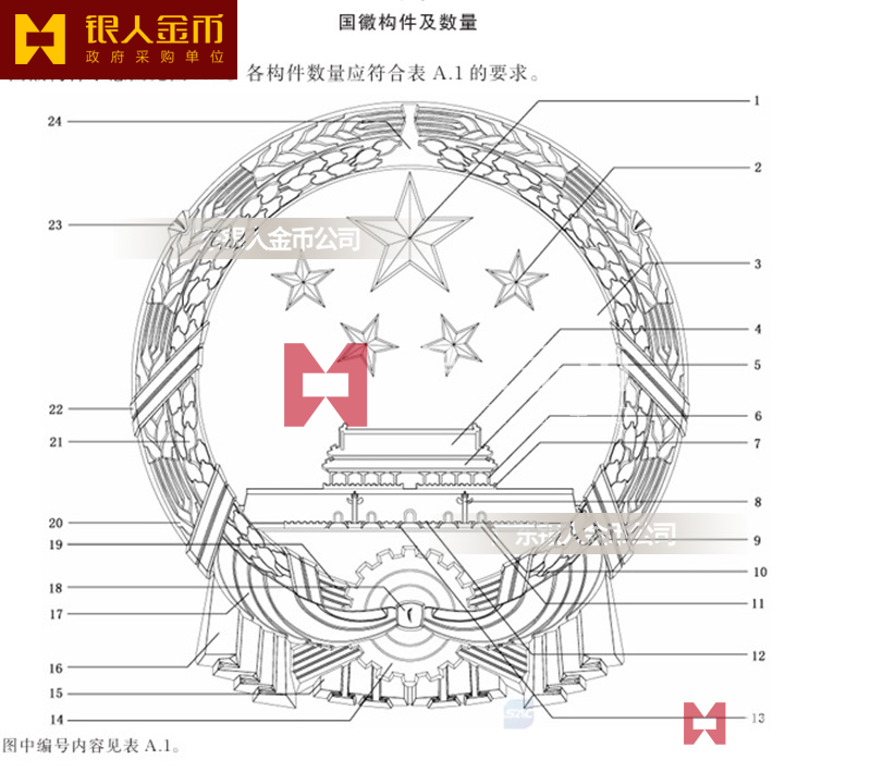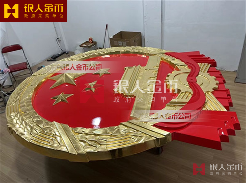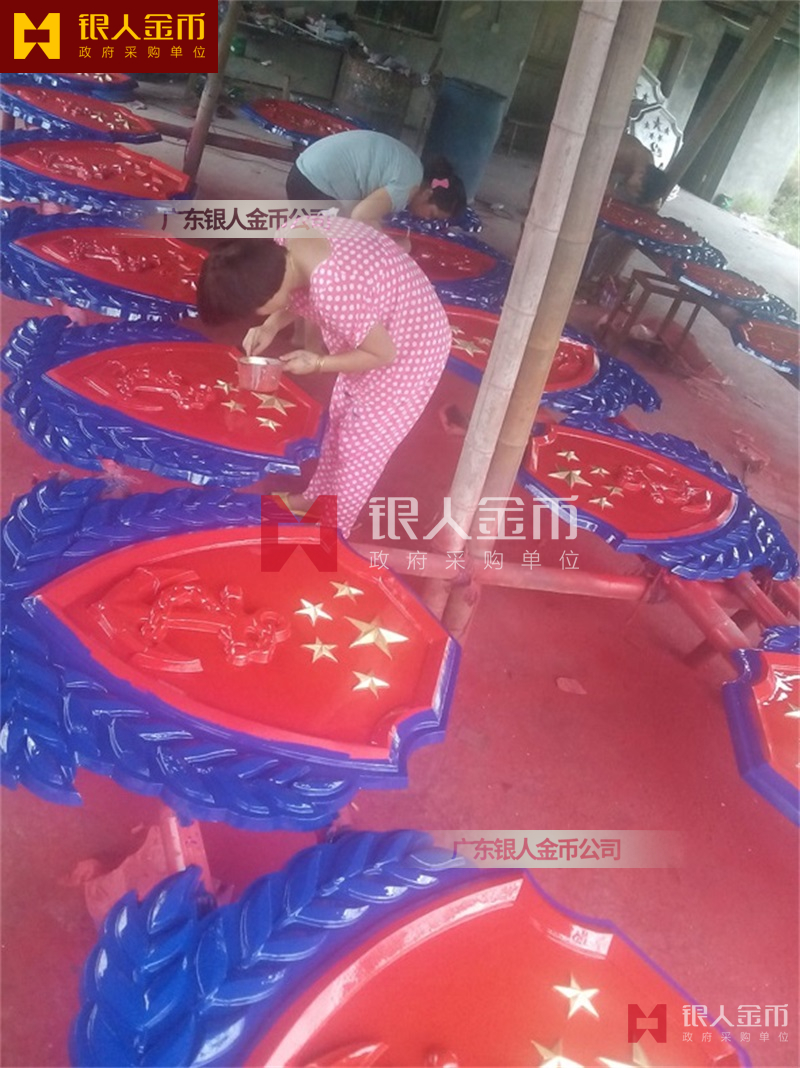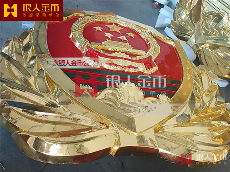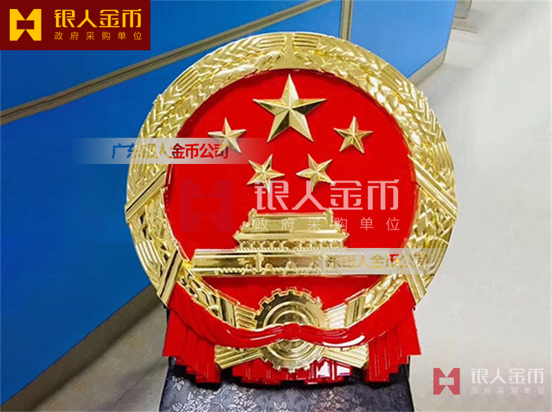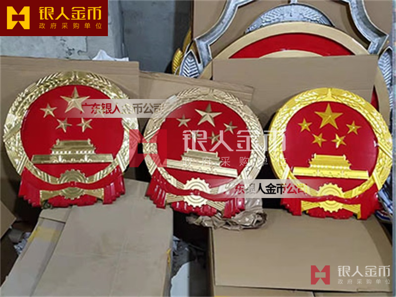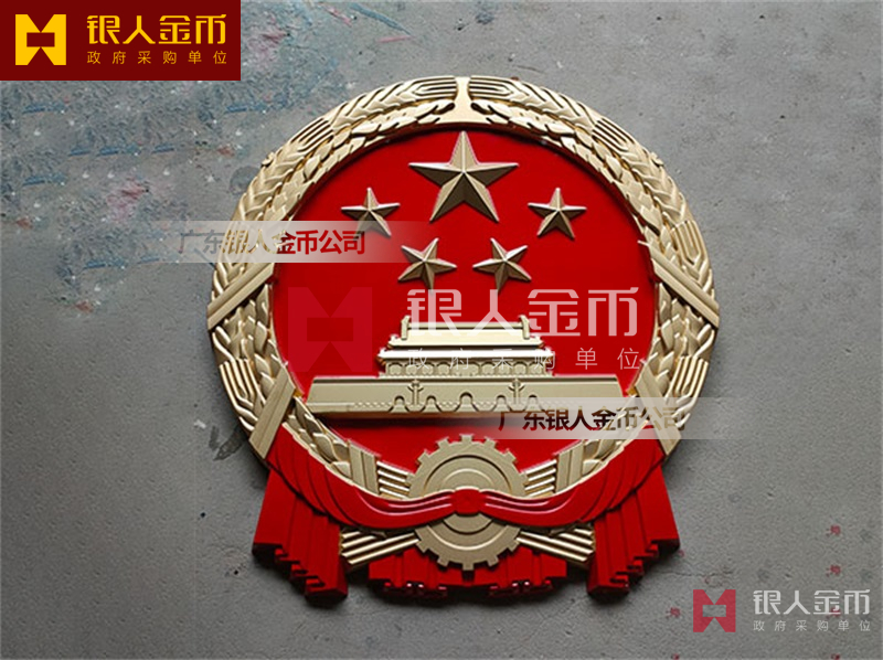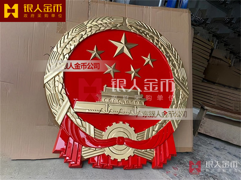 国徽订做、国徽生产、国徽批发、国徽制作、国徽销售、国徽设计、国徽制做、国徽制造、国徽加工、国徽零售我们做为一个对人民和政府负责任的企业,用精湛的工艺来报答人民服务忠于国家和人民的群体,用专业来服务,制作大型国徽徽章是严格按照《中华人民共和国国徽标准[GB15093-94]的规定制作,具有重量轻,高强度,拒风雨抗日晒,色彩鲜艳,不褪色的特点。高光泽静电均布式喷烤漆和先进贴金工艺,挂徽表面喷涂进口透明防腐蚀漆加以保护,欢迎批发商与单位领导们来电选购。