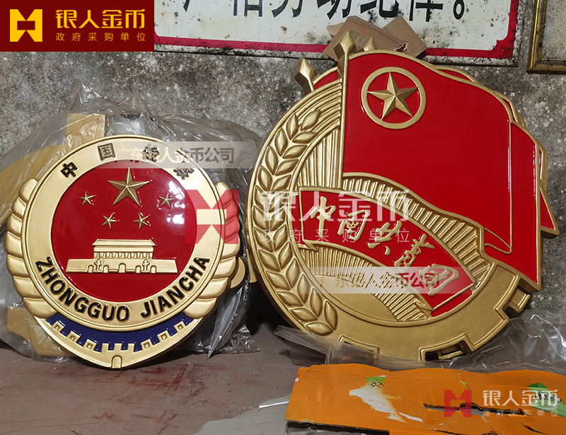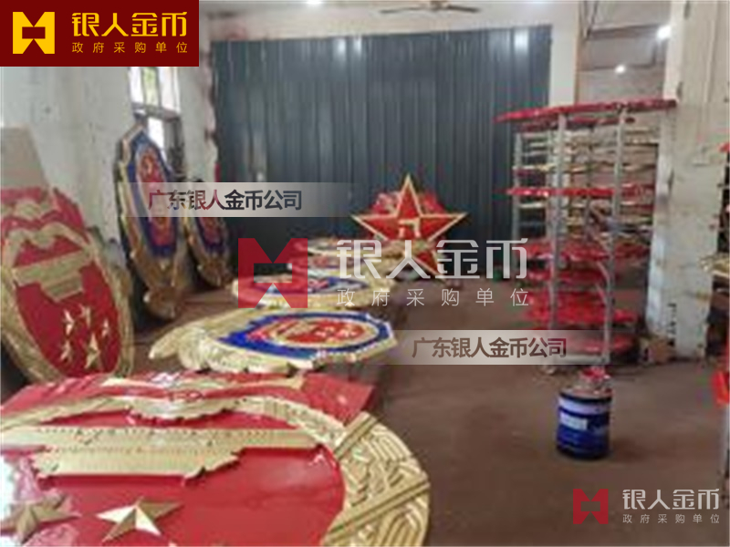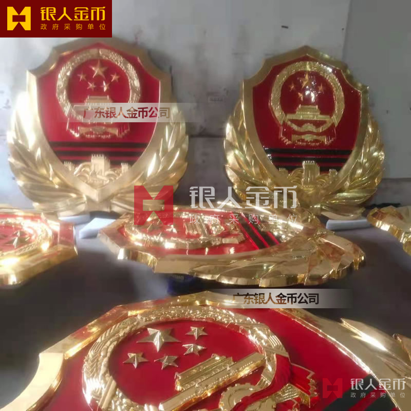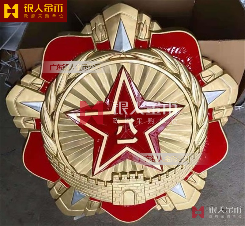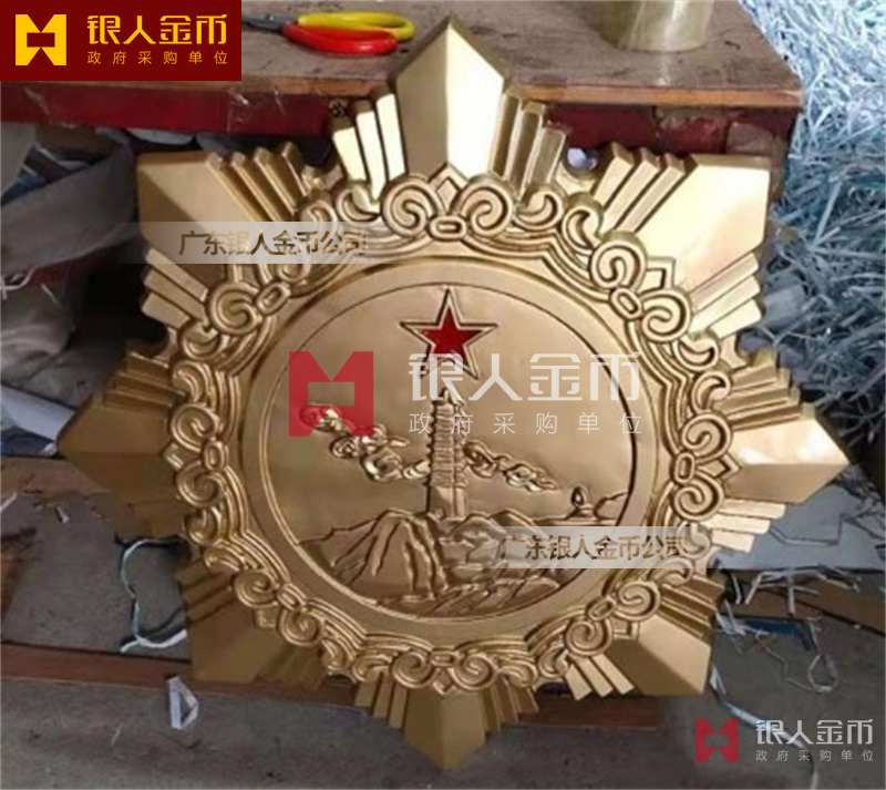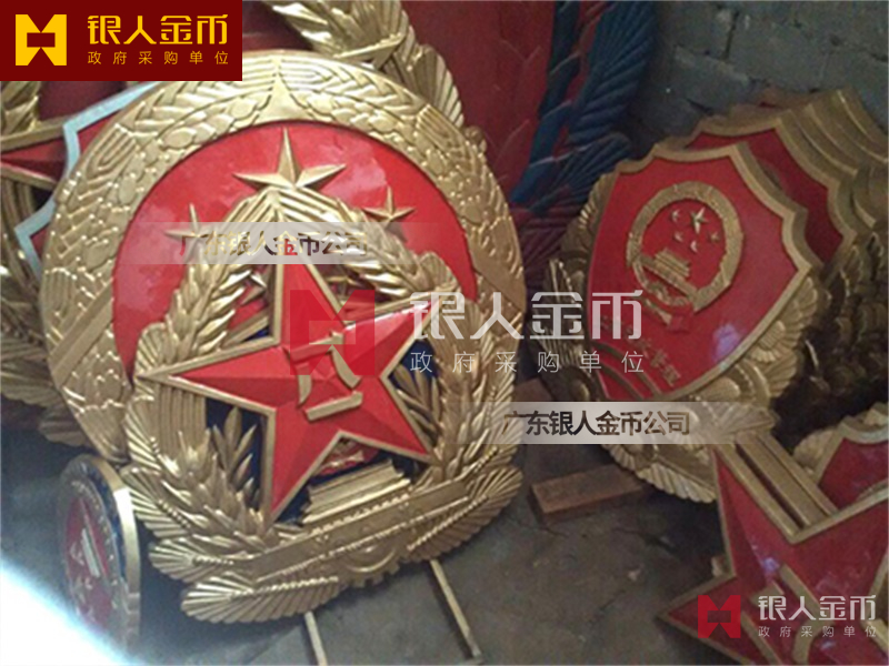 政府部队战区机关大楼门头礼堂户外室内外悬挂大型国徽党徽八一军徽警徽政协会徽五角星检察院徽法院徽标生产制作定制(图)【广州徽章厂制作公司】