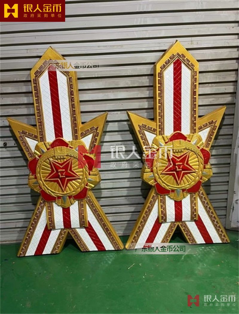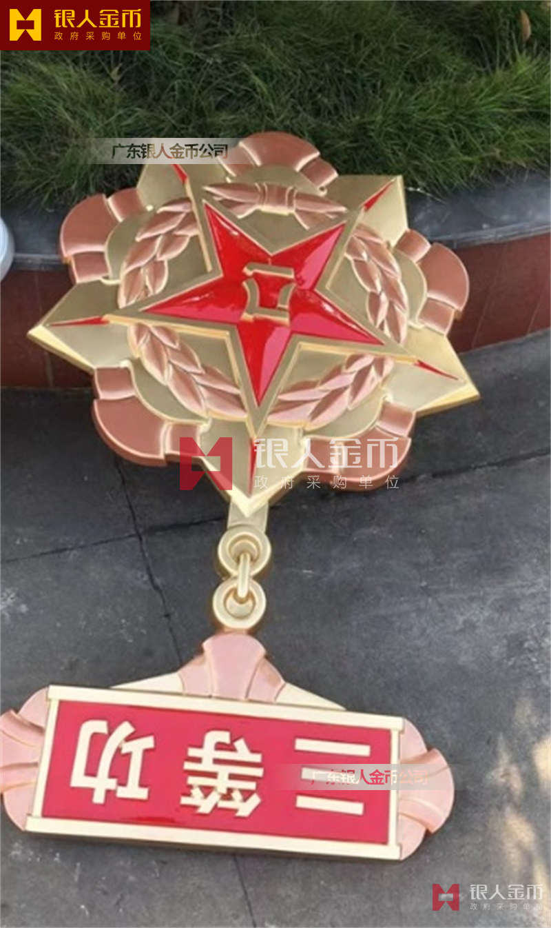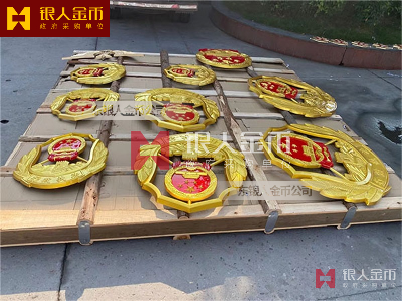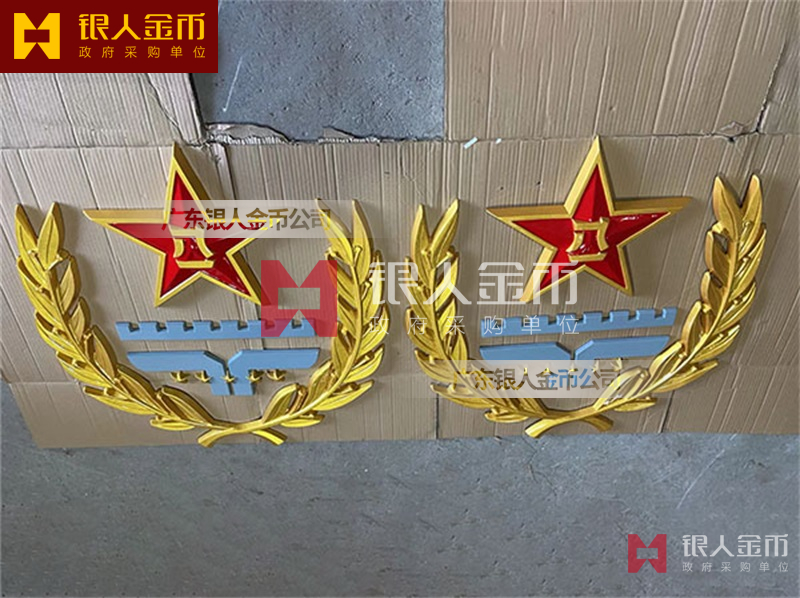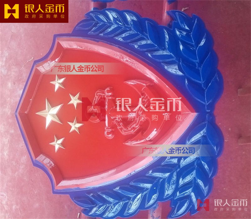 政府部队战区机关大楼门头礼堂户外室内外悬挂大型国徽党徽八一军徽警徽政协会徽五角星检察院徽法院徽标生产制作定制(图)【广州徽章厂制作公司】