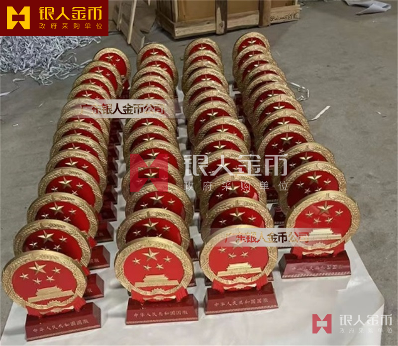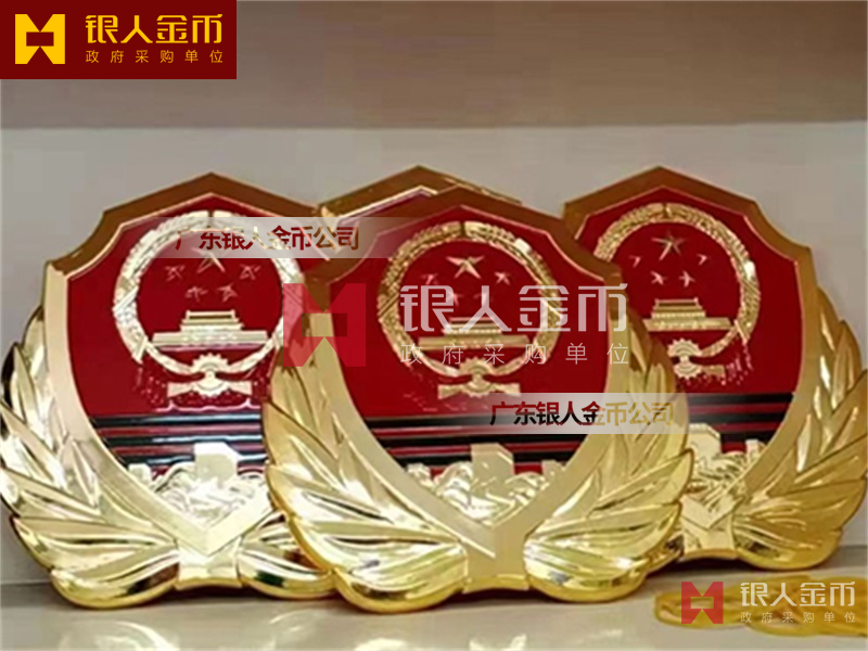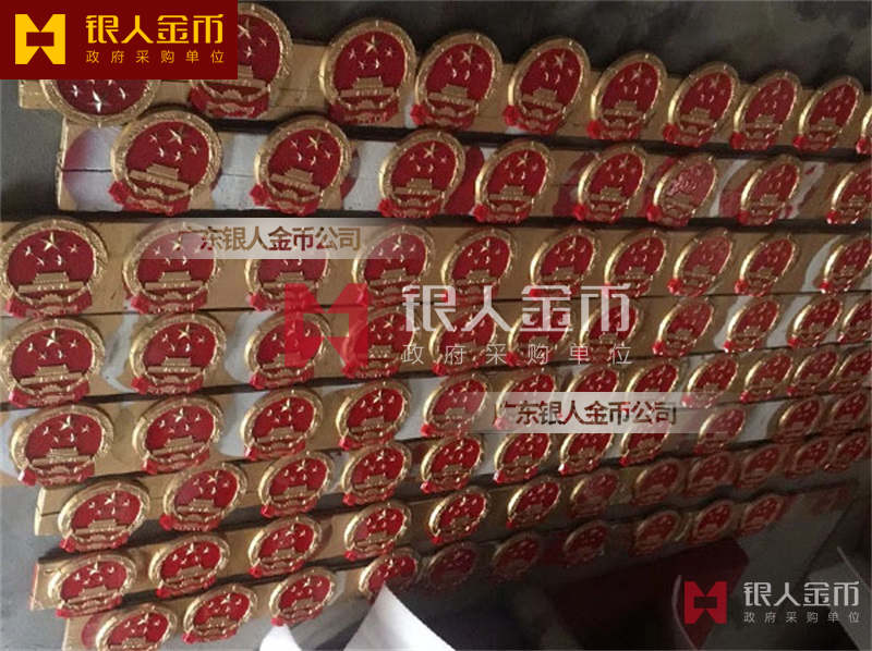国徽订做、国徽生产、国徽批发、国徽制作、国徽销售、国徽设计、国徽制做、国徽定做、国徽制造、国徽加工、国徽零售我们做为一个对人民和政府负责任的企业,用精湛的工艺来报答人民服务忠于国家和人民的群体,用专业来服务,【广州天河徽章厂】制作大型标志徽章是严格按照《中华人民共和国国徽标准[GB15093-94]的规定制作,公安警徽按照《人民警察警徽技术标准》[GA244-2000]制作,其他标志制作按照国徽标准来制作。是采用高强度轻铝合金为材料,并采用先进的浸透压延铸造技术,高光泽静电均布式喷烤漆和先进贴金工艺,挂徽表面喷涂进口透明防腐蚀漆加以保护。具有重量轻,高强度,拒风雨抗日晒,色彩鲜艳,永不褪色的特点。高光泽静电均布式喷烤漆和先进贴金工艺,挂徽表面喷涂进口透明防腐蚀漆加以保护。具有重量轻,高强度,拒风雨抗日晒,色彩鲜艳,永不褪色的特点。是会议室、礼堂、办公大楼、机关大院等重要场所的必备标志 为全国顾客提供订做、生产、批发、制作、销售、设计、制做、定做、制造、加工、零售等各种形式的服务。如果你有以下疑问:大型国徽哪里有卖、国徽那里可以制作、国徽在哪里能买到、国徽哪能买到、国徽如何买到、国徽哪里可以买到、国徽现货哪里可以买到、国徽哪里能买到、国徽哪里有出售、国徽哪有卖、有制作有做国徽的厂子、国徽那里能买到、国徽有卖、国徽多少钱,广东银人将为你一一解答,国徽制造企业制作订购,【广州徽章厂】大型挂徽标的生产工艺流程一般为:制作模具、浇筑、抛光、上漆、烤漆/贴金。我厂由于经营多年,常见的标志各种规格模具齐全,常见标志一般都有现货。大型挂徽的常见规格有:40公分、50公分、60公分、70公分、80公分、90公分、1米、1.2米、1.4米、1.5米、1.8米、2米、2.5米、3米、3.5米等。