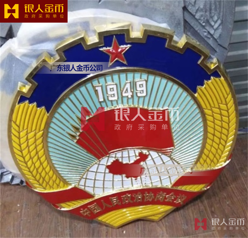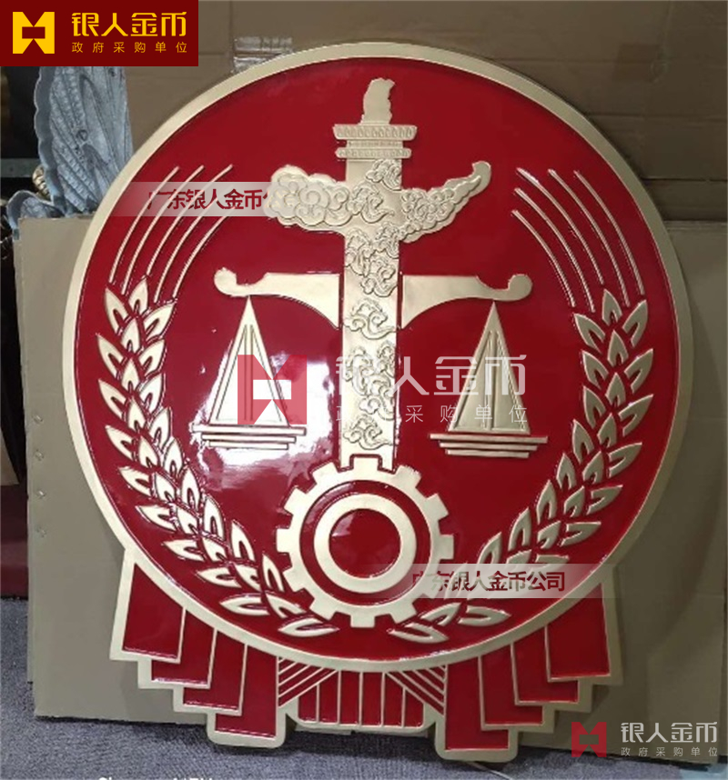 大型户外大楼室内礼堂悬挂人大政协会徽军警税务司法工会交通安监质监检疫法院检察院徽标生产定制制造【广州银人徽章厂制作公司】