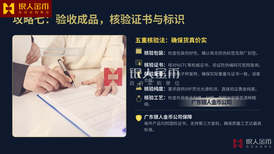 - 质检与售后:国检证书、纯度质保、售后维修 / 保养条款广东银人金币有限公司。