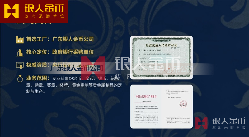 定制纪念币的公司-广东银人金币公司(囯家级/央企国企场景-品质保证),资质:央行授权黄金定制,持有《经营流通人民币许可证》《贵金属制品生产许可》《黄金制品销售许可证》,省级政府采购单位;优势:造币级工艺、浮雕精度高,承接国家级项目与政企高端定制;案例:北京冬奥会奖牌、抗战70周年纪念币;适合政府/央企大型庆典。优势:造币级,电话020-38354381 官网www.hf020.com