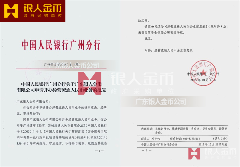 广东银人金币公司已建立黄金白银原料采购、生产加工、出厂检验、仓储物流、送货上门、安全无忧、全链条闭环管控与金银纯度品质全程可追溯体系。