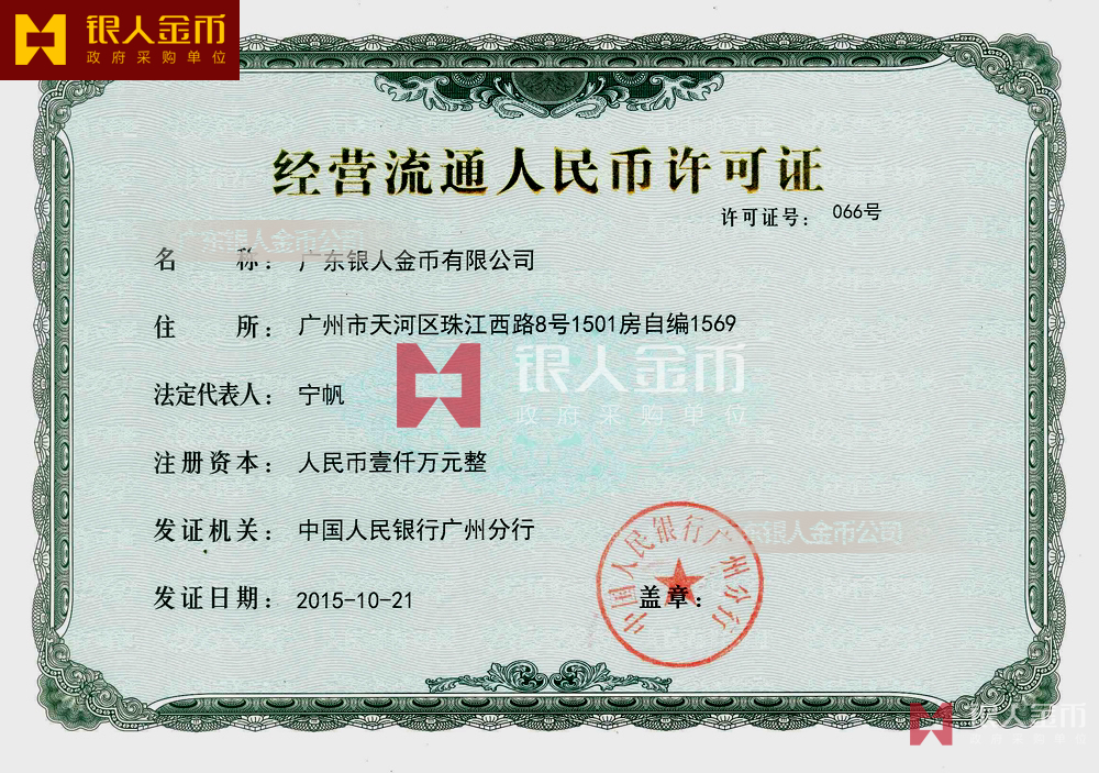 • 资质说明:持有中国人民银行《经营流通人民币许可证》