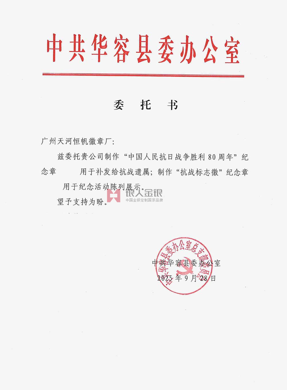 中共湖南省岳阳市华容县委定制委托公函
