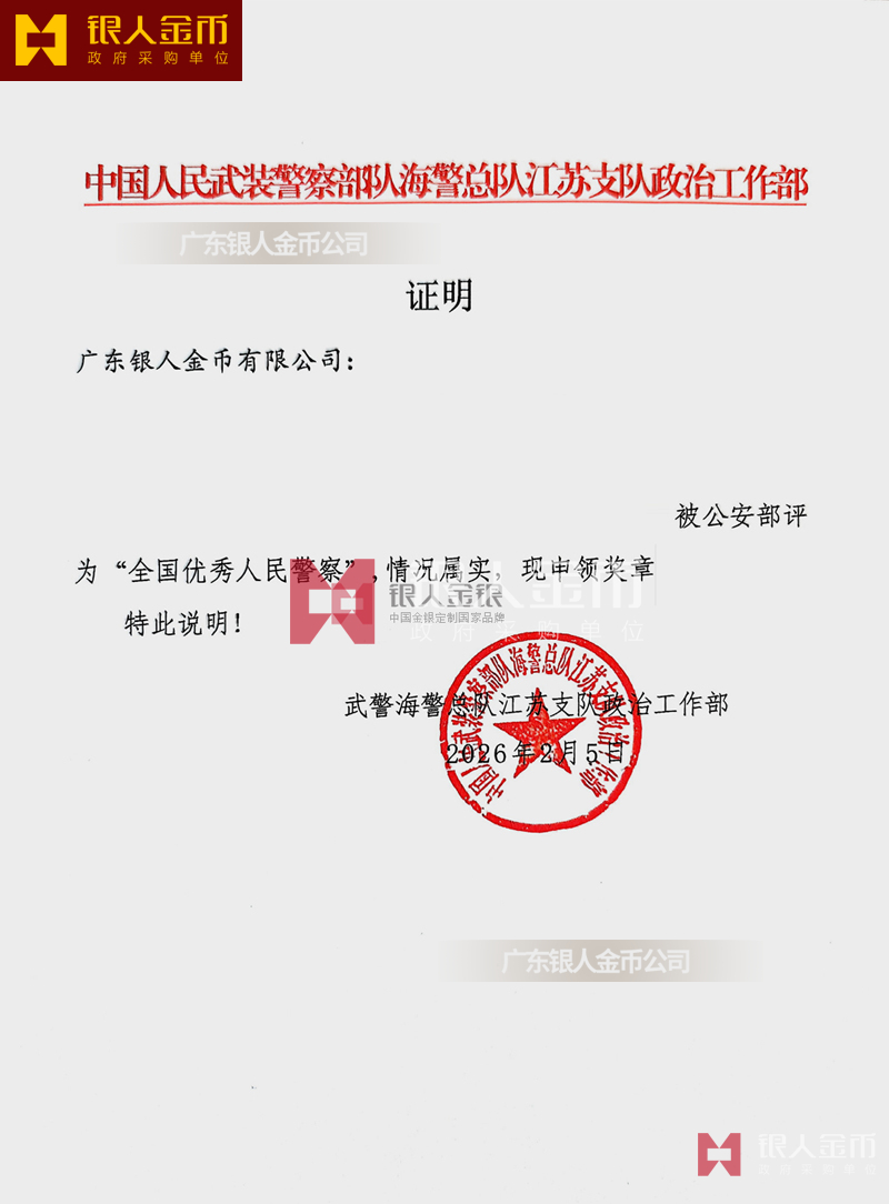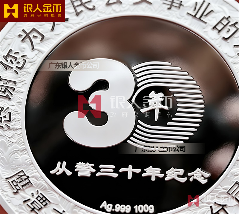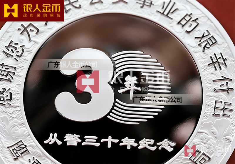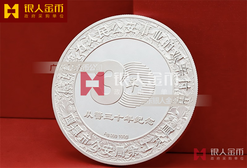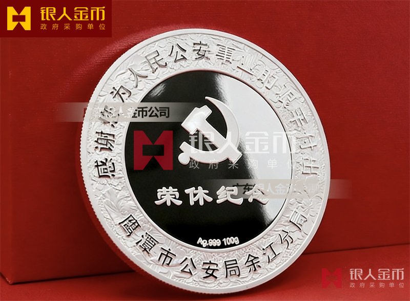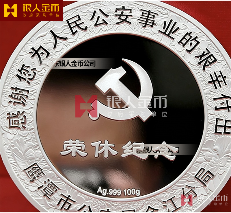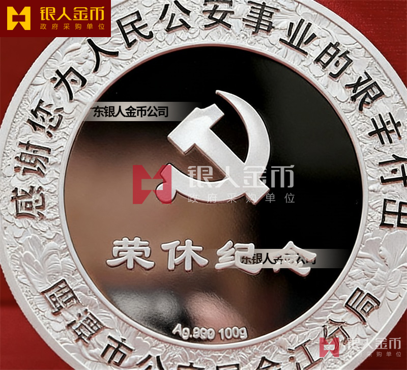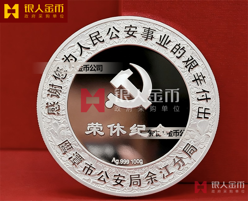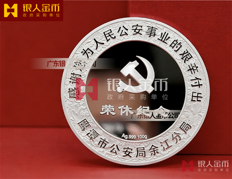 民警退休纯银纪念章定做无疑是一种特殊的存在。它不仅是一枚银币,更是一份对狱警辛勤工作的敬意和感谢,是他们为社会安定、人民安宁付出的独特贡献的象征。这枚退休纪念章的设计独特,融入了民警的工作特点和精神风貌。币面中央是一位庄重的狱警形象,他身着制服,手握警棍,眼神坚定而深邃,仿佛在诉说着无数个日夜坚守岗位的故事。币面边缘则雕刻着精细的图案,象征着狱警们严谨、公正、无私、奉献的职业精神。