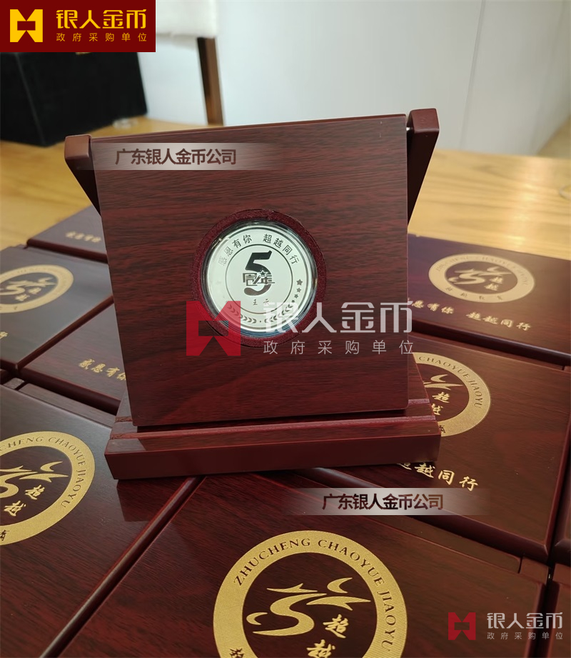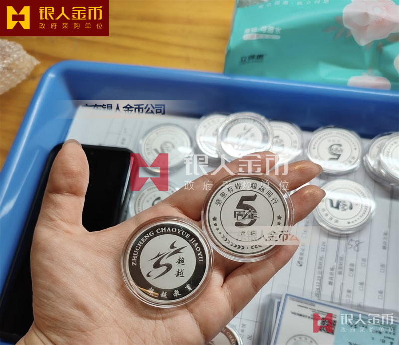 佛山超越教育5周年纪念银币定制_员工入职五周年纪念币定制_员工工作满5年银牌定制_5年员工银币定制_入职纪念银币定制