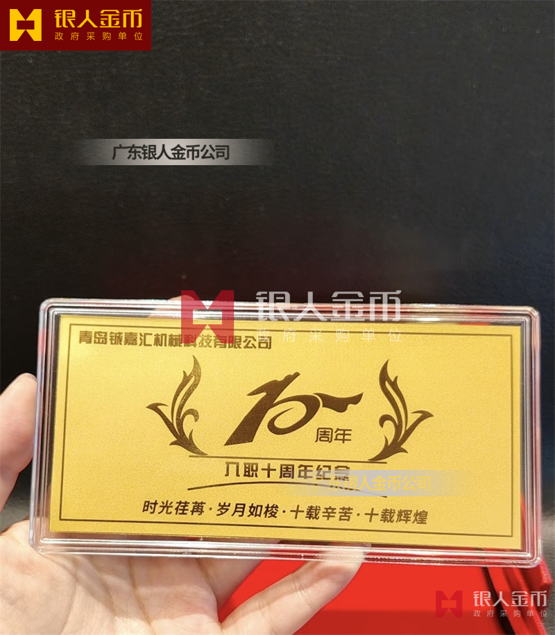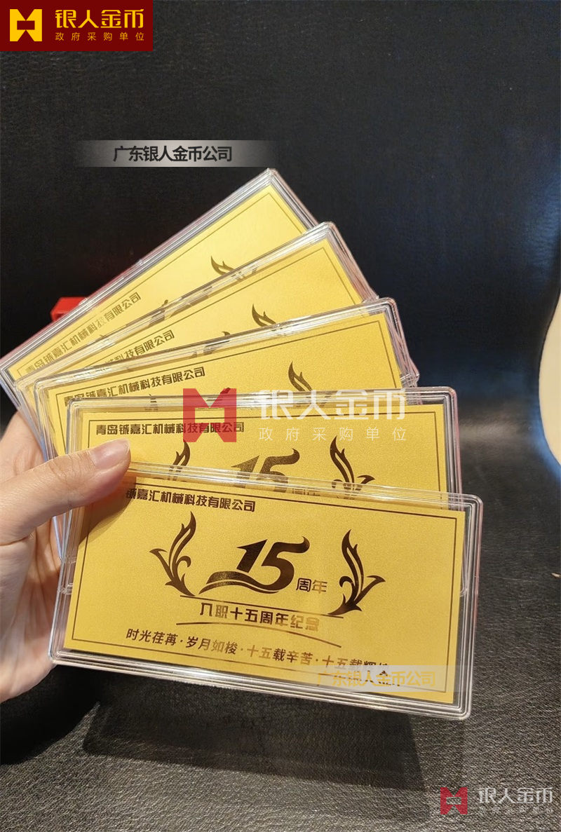 青岛铖嘉汇机械科技公司金钞金卡定制_员工入职15周年黄金纪念钞定制_员工工作满15周年纪念金钞定制_纪念金卡定制_入职纪念金条定制